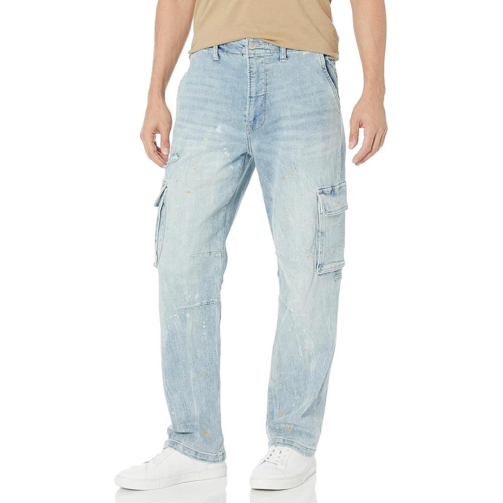 A chicer take on everyday baggy jeans for men, our straight-leg cargo pants are made from comfortable premium stretch fabric with a zipper and button closure. The multiple-pocket construction leaves ample room for your phone, keys, and much more. Pair these pants with your favorite T-shirt, denim jacket, or casual button-down to add grit to any outfit. These men’s stretch jeans offer an attractive design with a relaxed, worn-in appearance and can be machine washed in cold water and then tumble or hang dried.