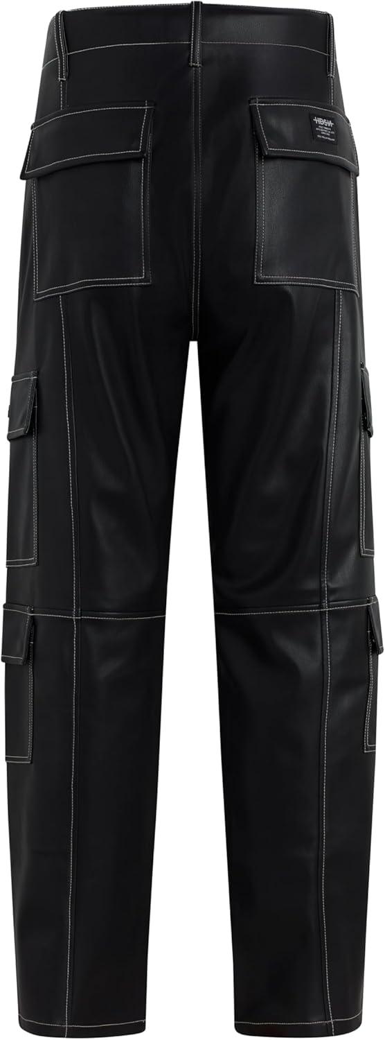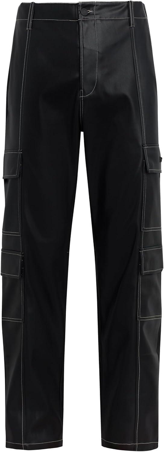 Our Baggy Cargo in Black Sky is cut from luxe, vegan leather with contrast stitching and cargo details including side and back patch pockets. For a less roomy fit, size down.