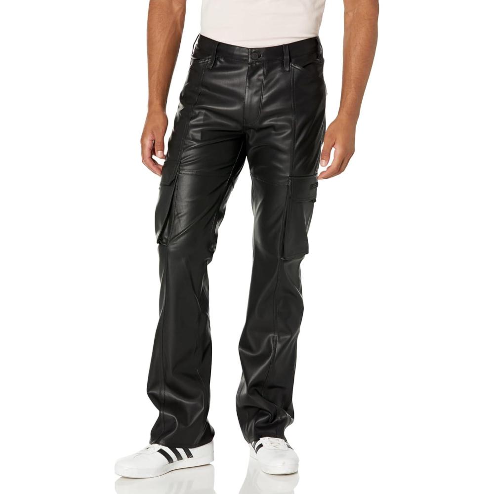 Our Walker Cargo Kick Flare Jean is cut with a flared bootcut hem and cargo pocket styling. The Phantom is crafted from luxe vegan Illusion Leather in black with classic five-pocket details.