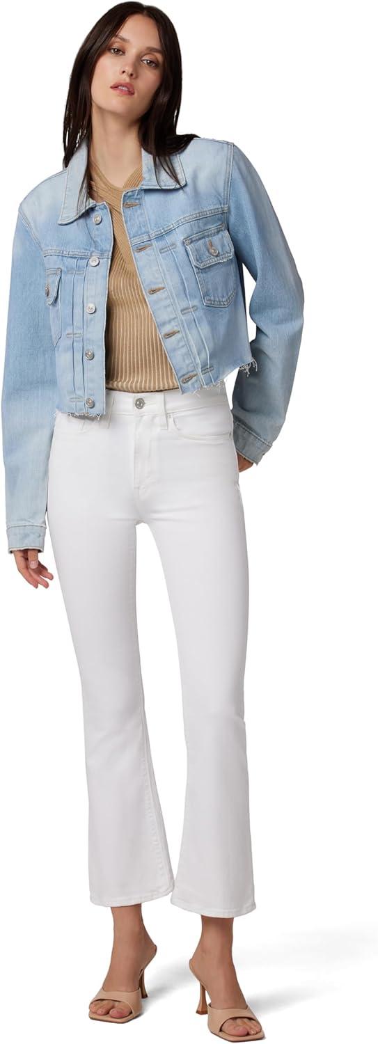 These crop jeans have a close, contoured fit and feature a zipper fly, button closure, and belt-loop waistband. The 5-pocket construction adds function and style, and the high-rise waist measures 10 1/4″ and pairs with the fitted cut and 19-inch cropped, flared leg opening for a modern, flattering profile.