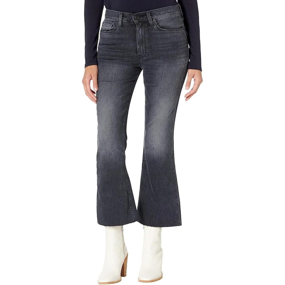These crop jeans have a close, contoured fit and feature a zipper fly, button closure, and belt-loop waistband. The 5-pocket construction adds function and style, and the high-rise waist measures 10 1/4″ and pairs with the fitted cut and 19-inch cropped, flared leg opening for a modern, flattering profile.