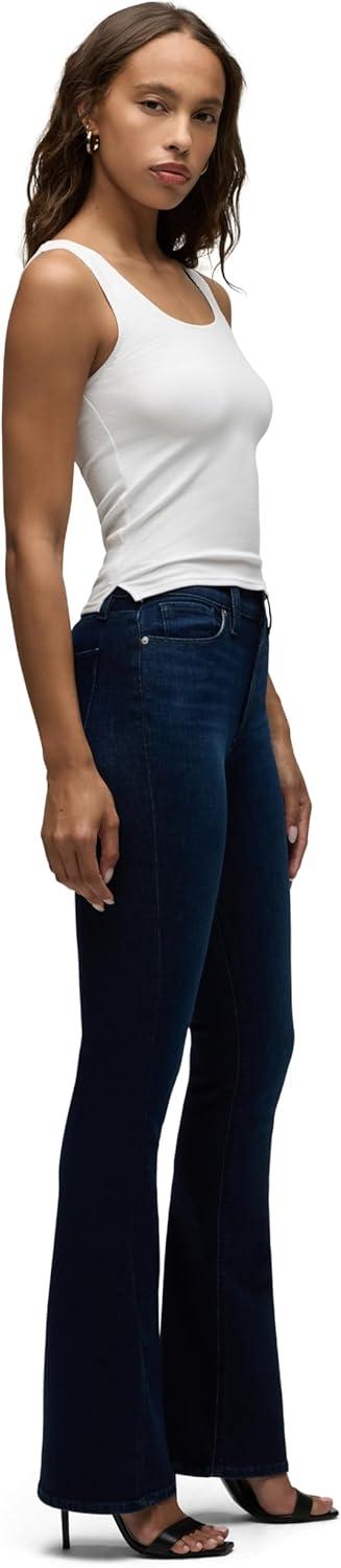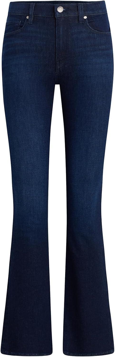 These petite high-rise jeans have a slim, contoured fit, gently flared leg, zipper fly, button closure, and belt-loop waistband. The 5-pocket construction adds function and style wherever you wear them. The high-rise waist measures 8 1/4″ and pairs with the fitted cut, 16-inch flared leg opening, and 31-inch inseam for a modern, flattering profile. Available in multiple washes and sizes, these pants offer an attractive design with unique detailing. Made from a high-quality blend of cotton and elastane for optimum stretch and comfort, these jeans are machine washable on a gentle cycle.