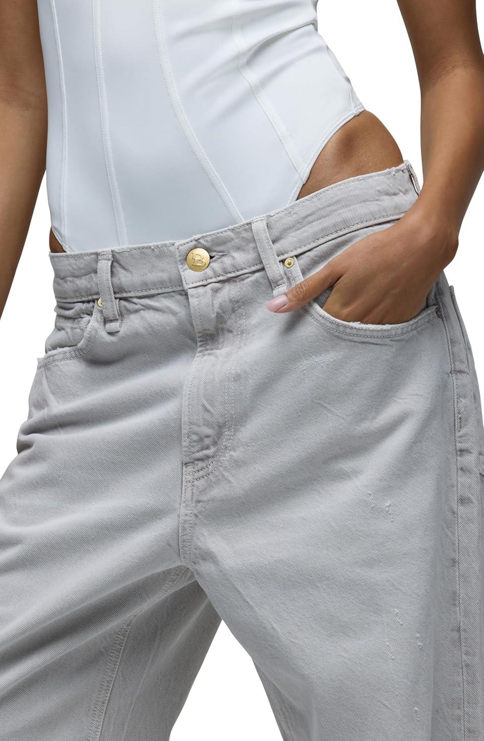 Part of our Brooks Nader collab capsule, the Brooks Low & Loose Jean in Stone Grey is designed to sit low on the hip with a baggy fit throughout the leg, and it has a clean finished hem. To elevate the look, we added gold branded buttons and branded embroidery to the back waistband. This pair is made of rigid denim in a light grey wash with heavy stone washing, edge grinding and whiskering. This capsule was curated by model Brooks Nader and features her personal closet must-haves.
