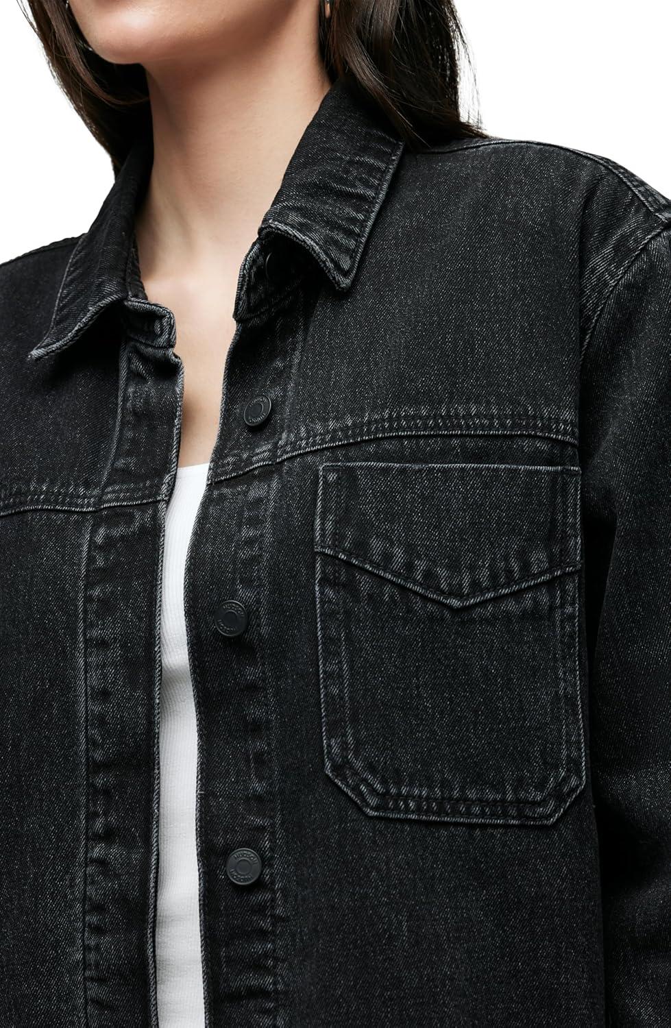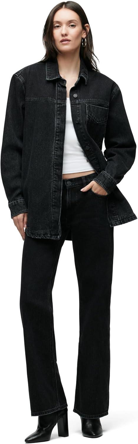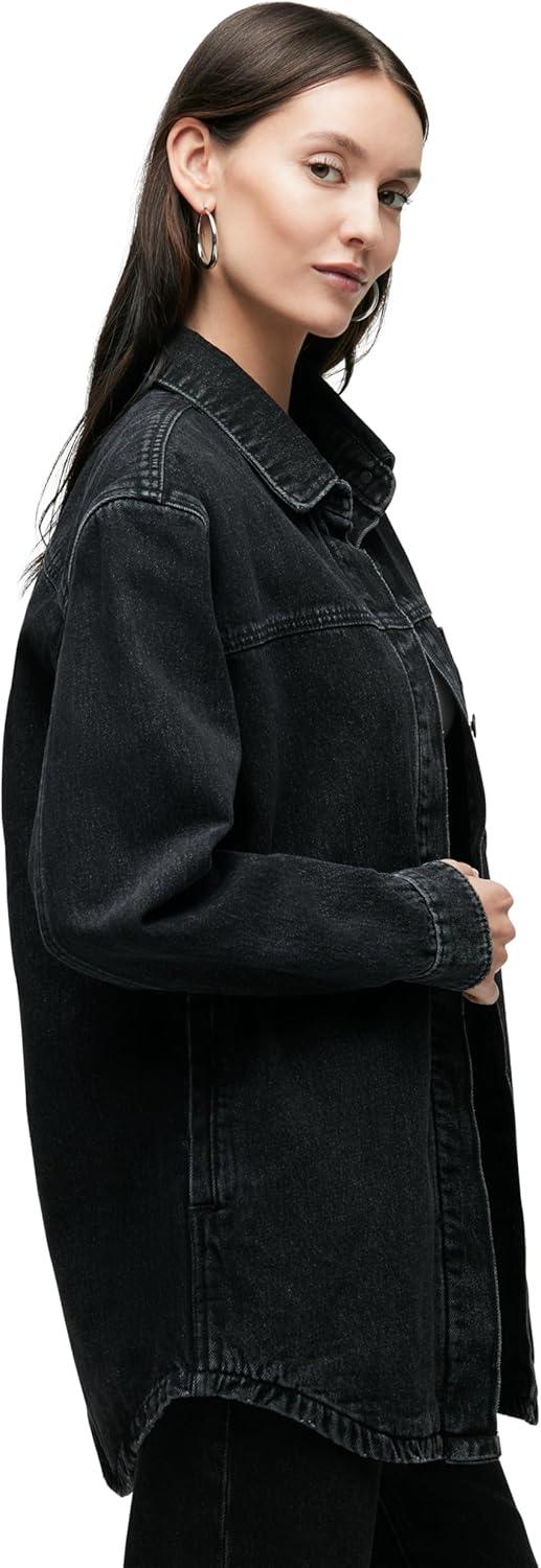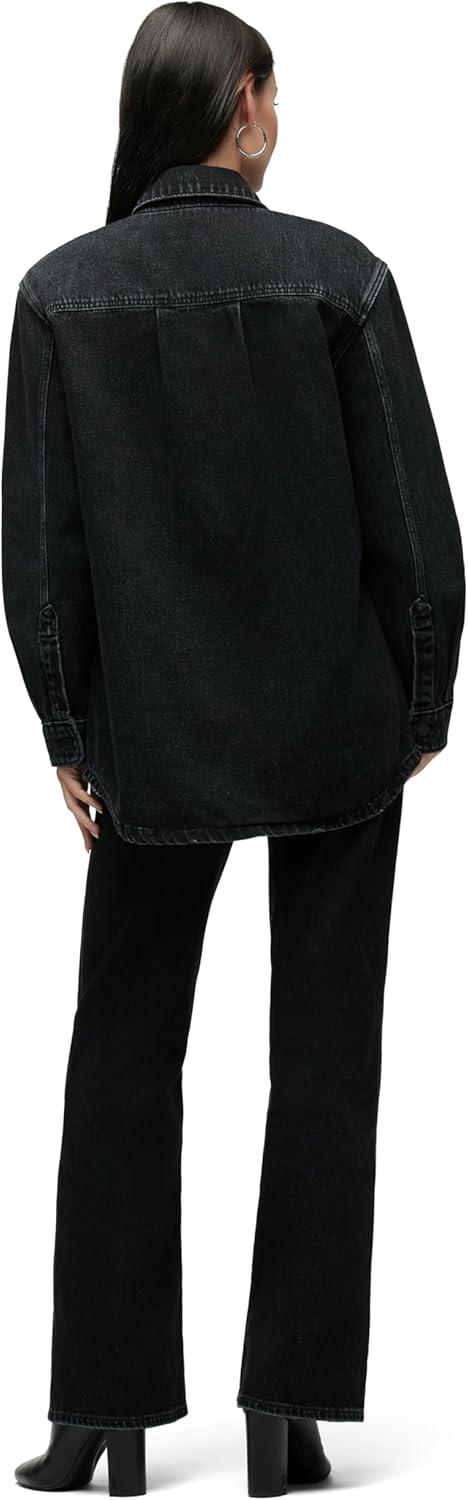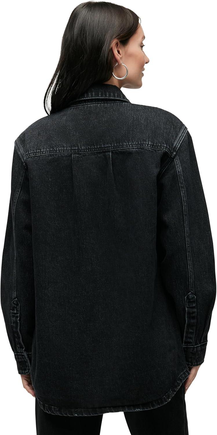 The Shacket in the light wash, Dubai, is cut from a lightweight, drapey rigid denim. The relaxed fit features long sleeves, pointed collar, side pockets and grinding along the edge.
