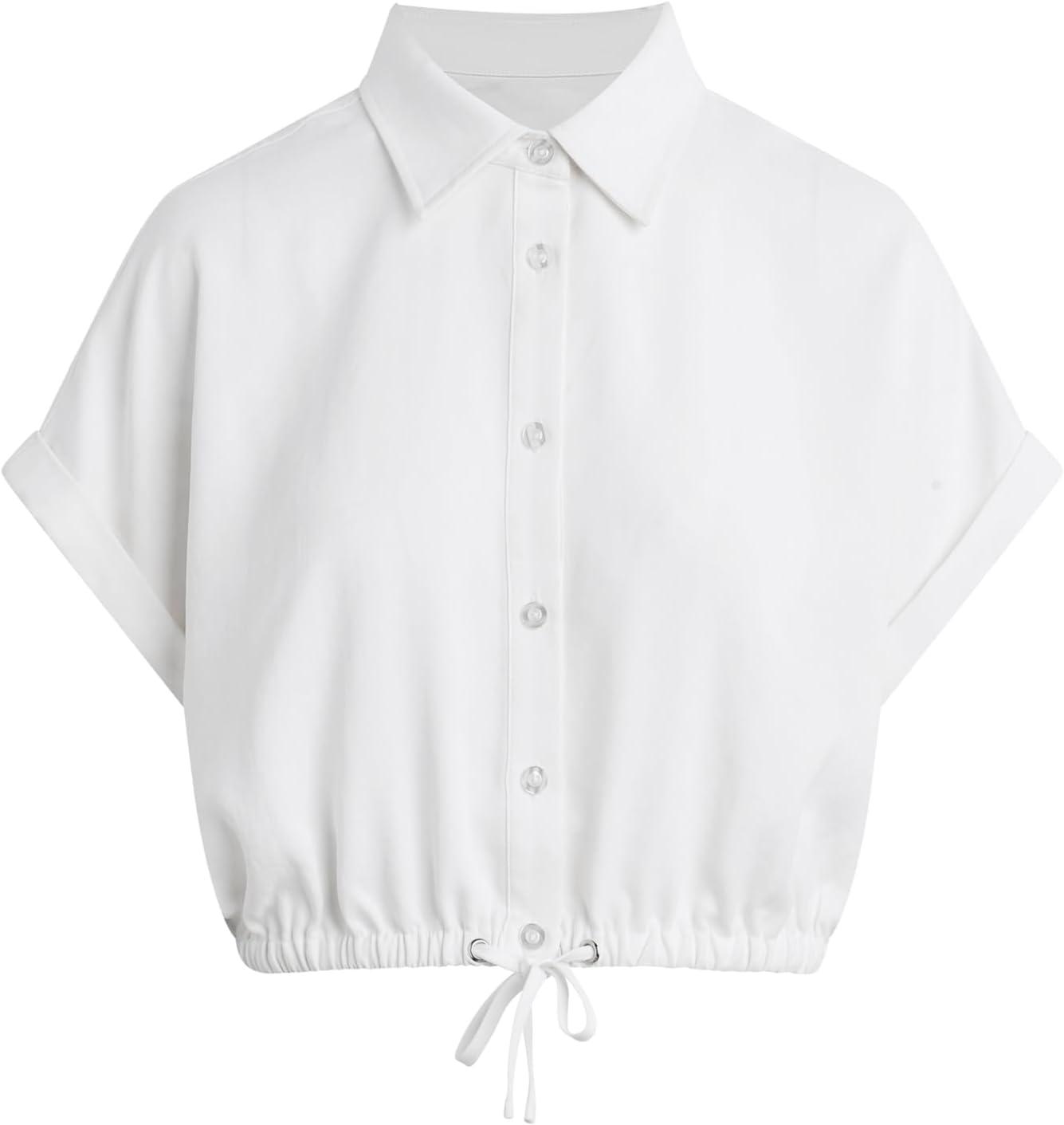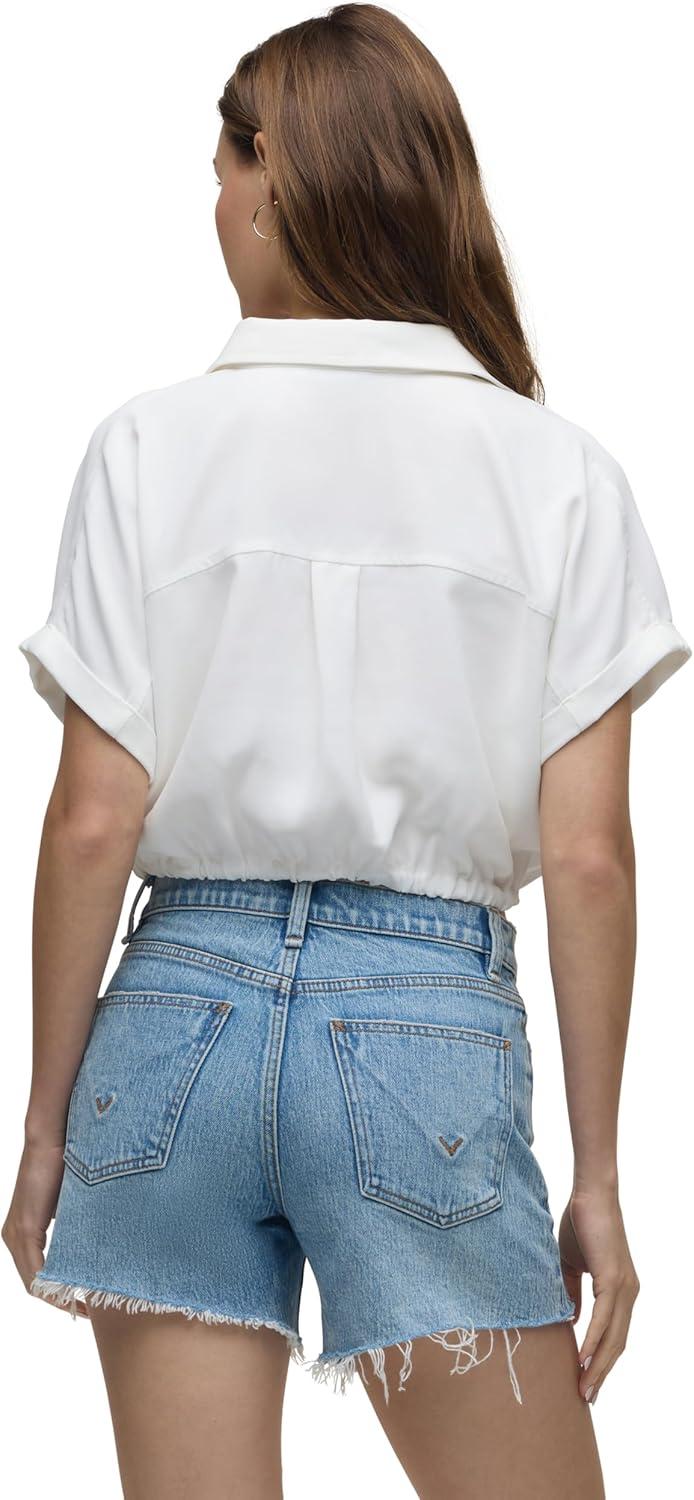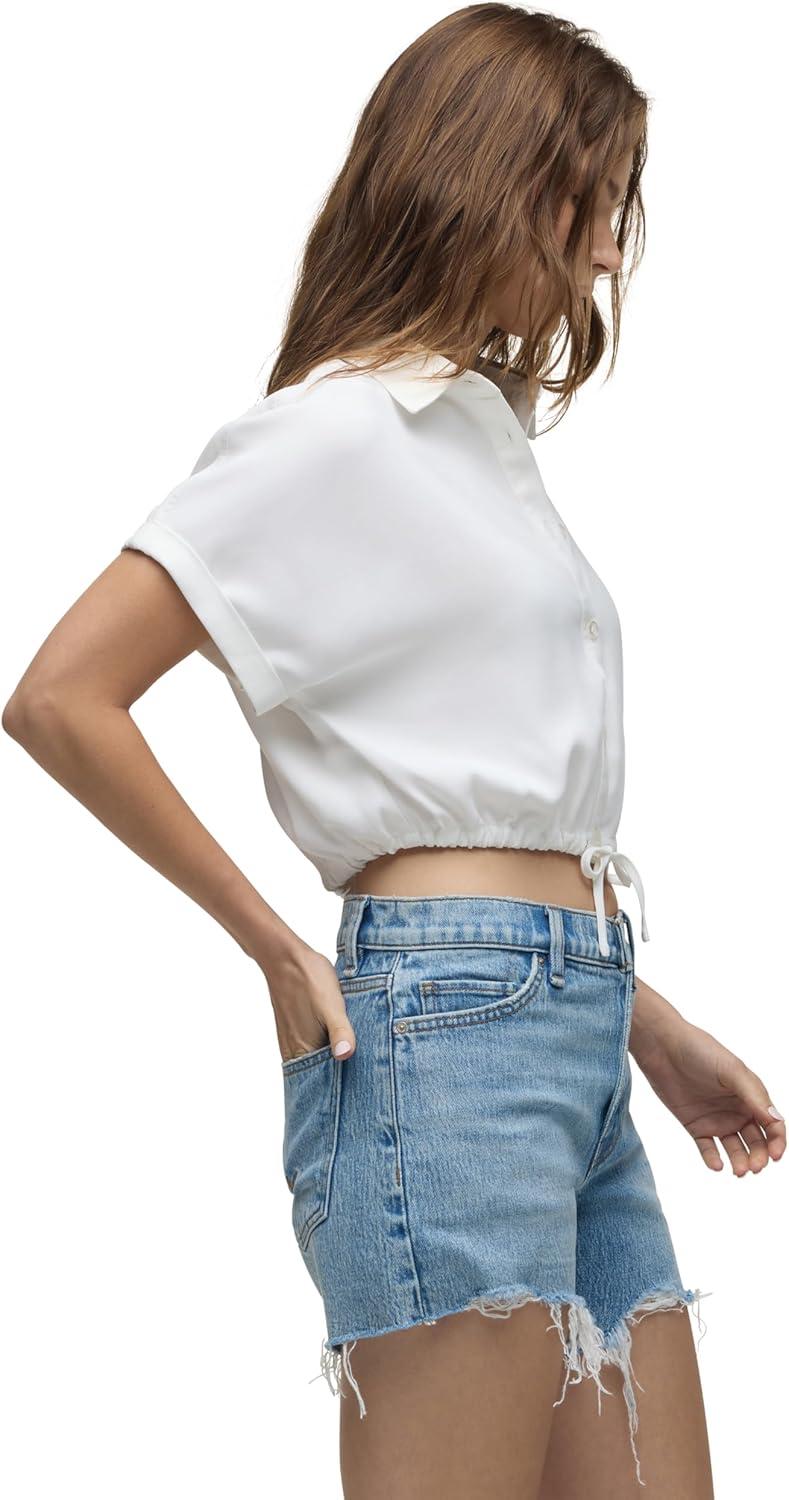 HUDSON womens Drawstring Button Down Short Sleeve Shirt(White)