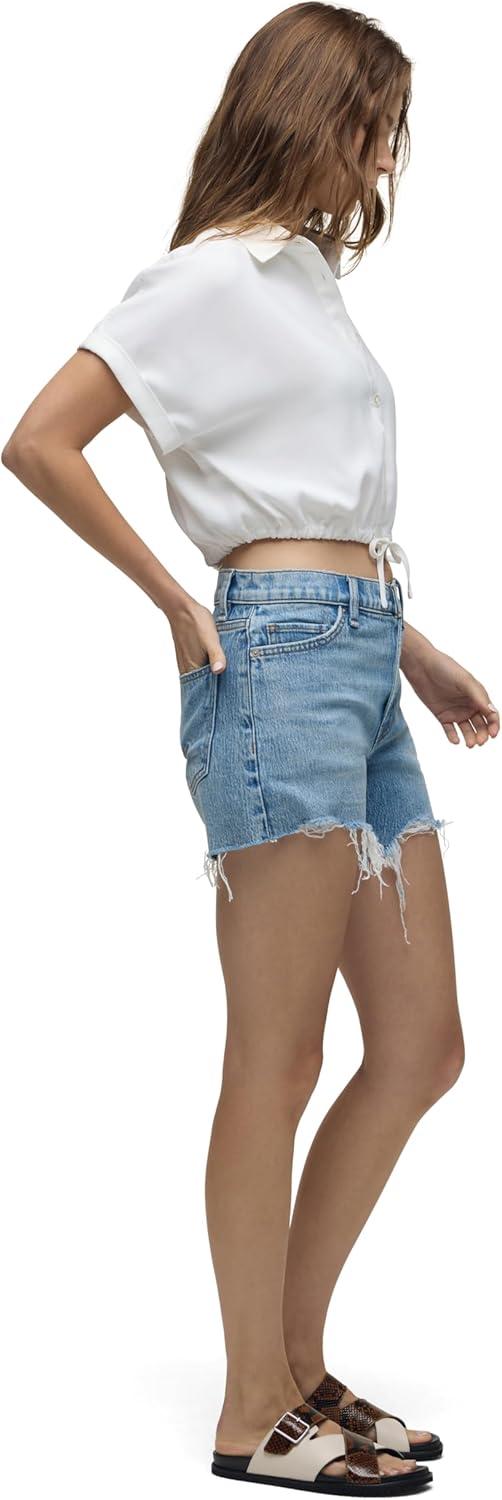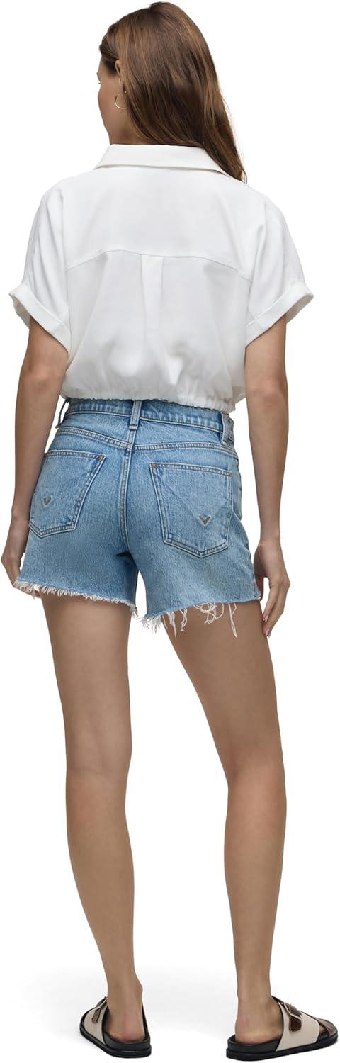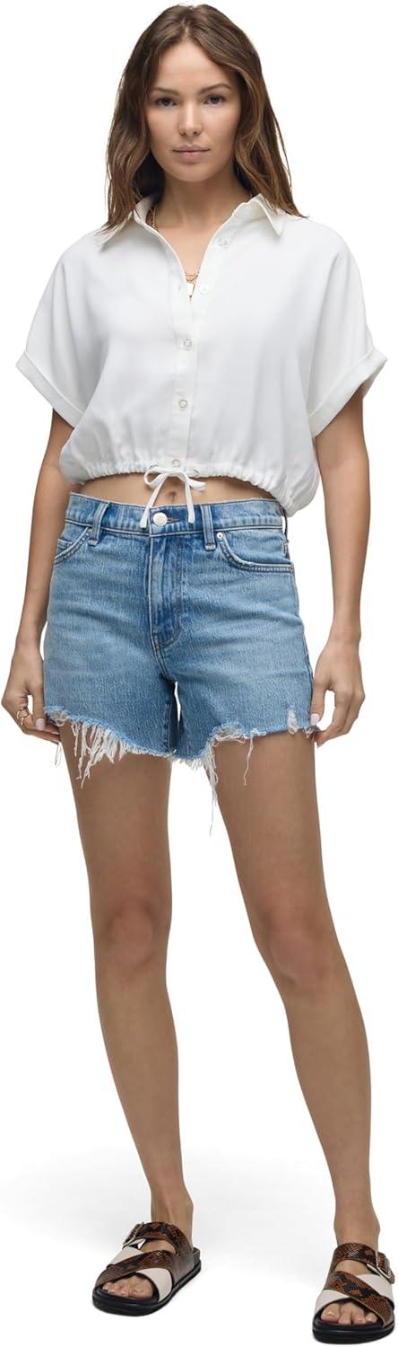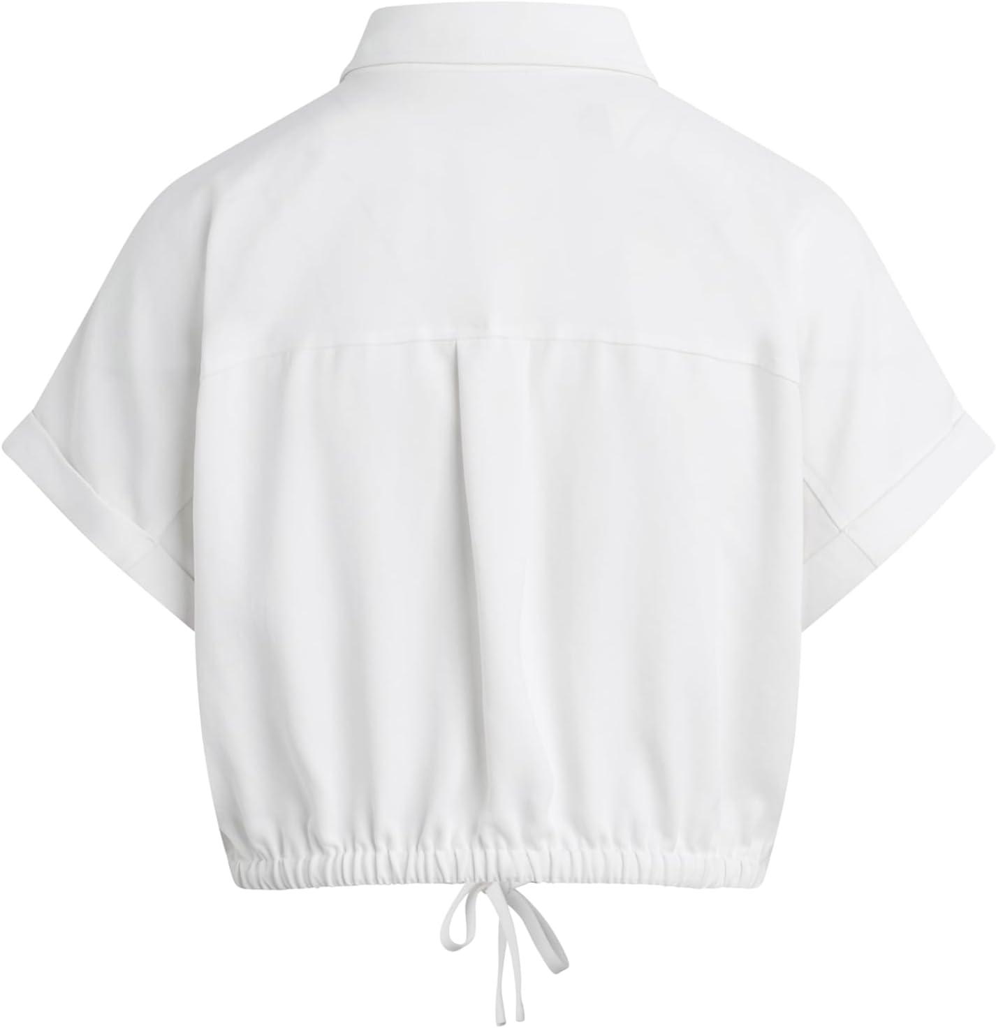 HUDSON womens Drawstring Button Down Short Sleeve Shirt(White)