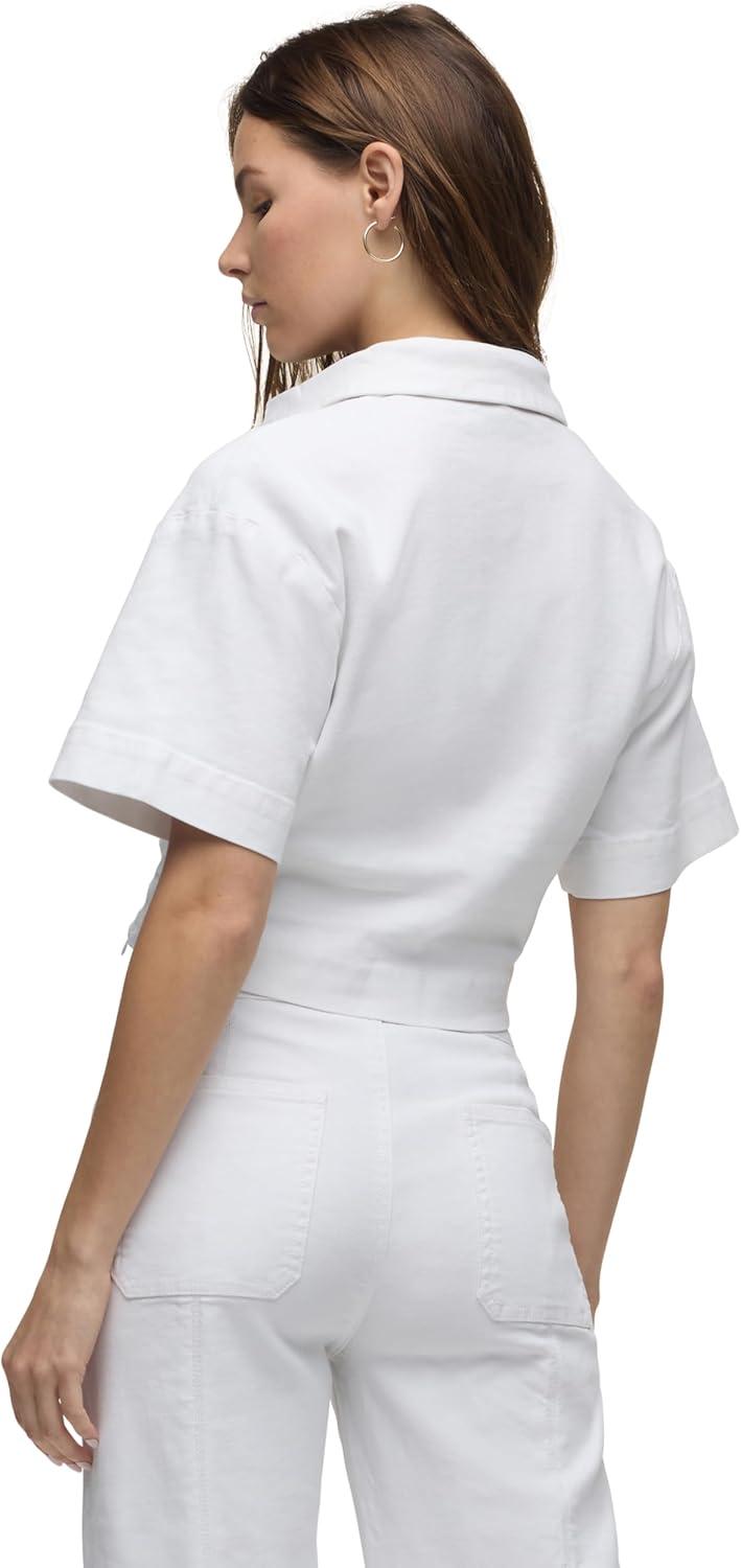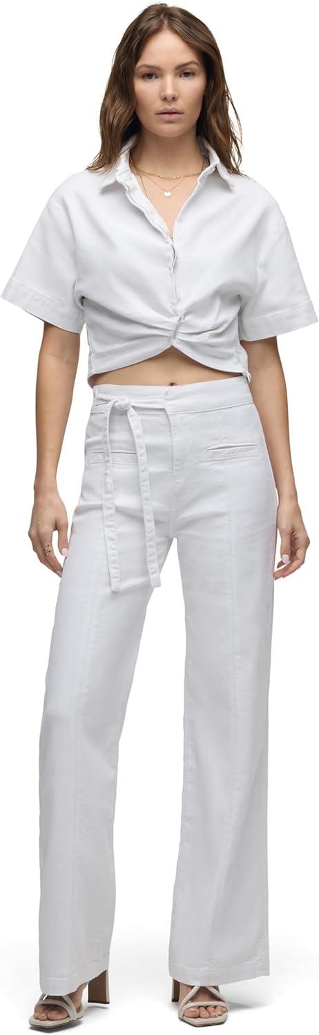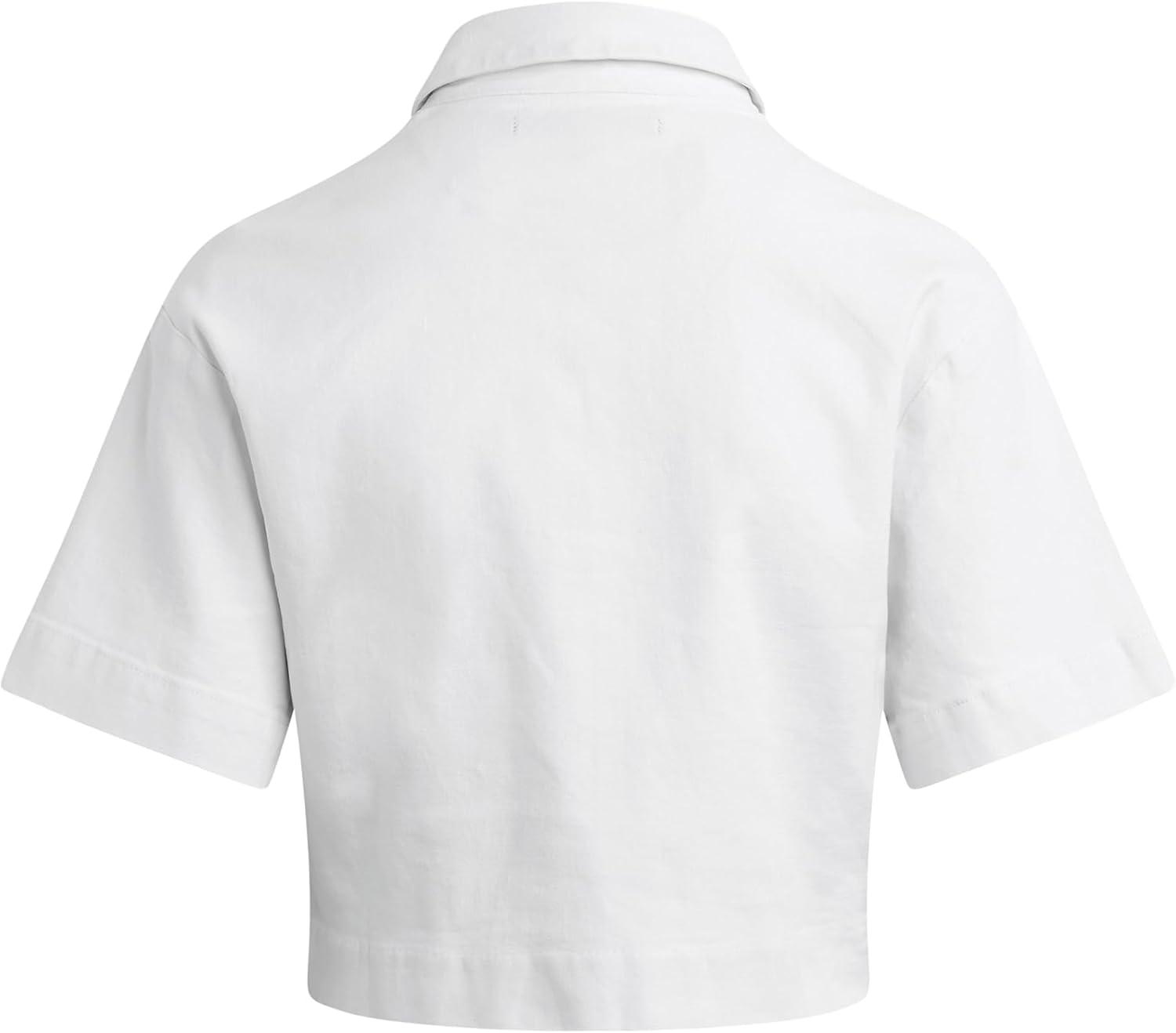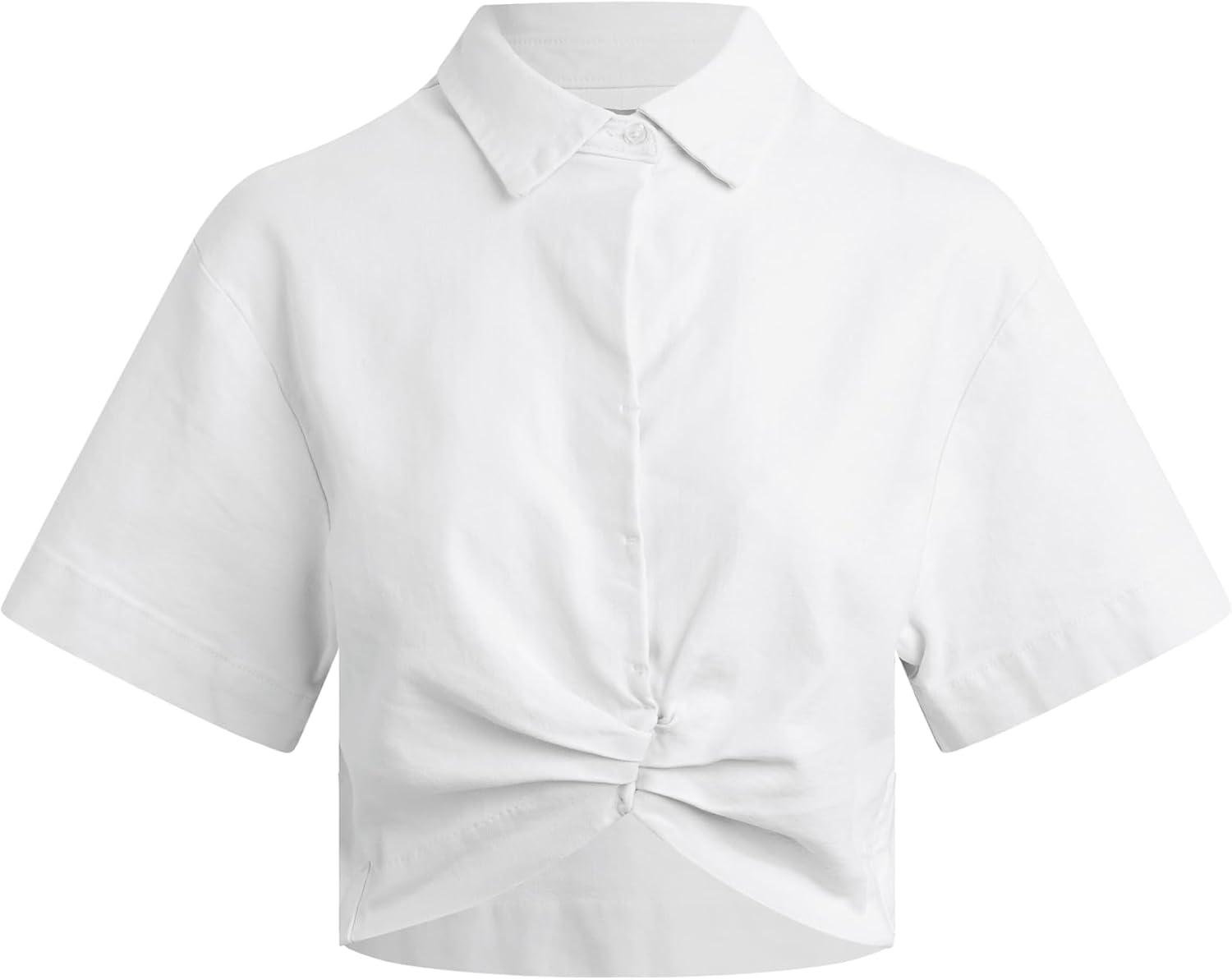 HUDSON Women’s Knot Front Button Down Short Sleeve Shirt(Crisp White)
