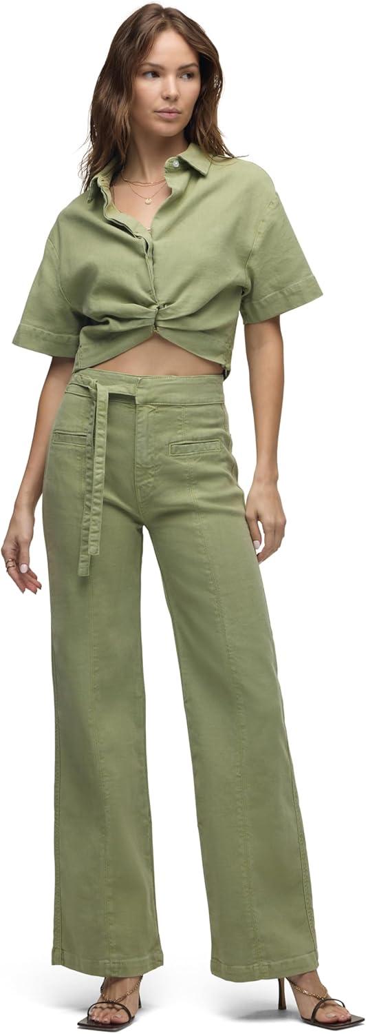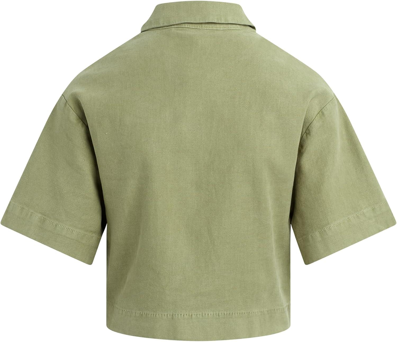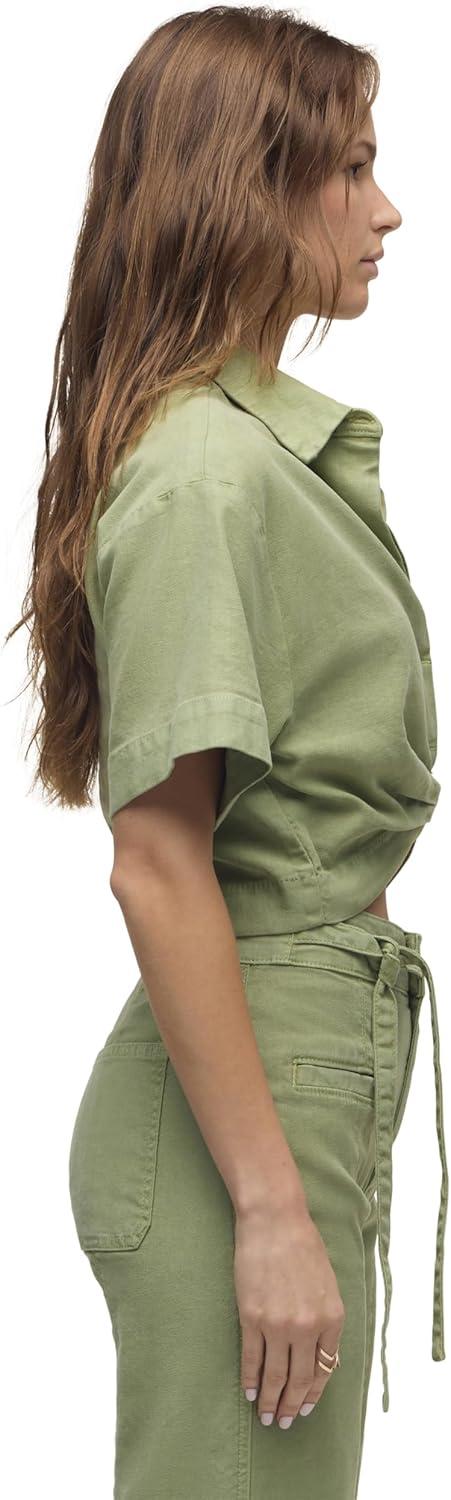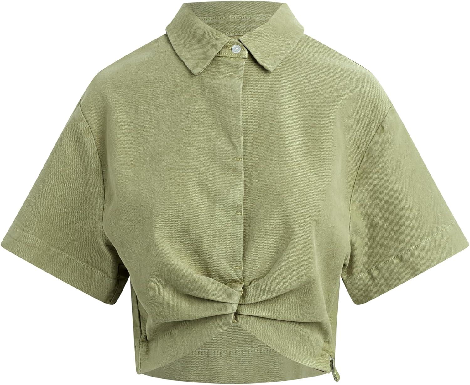 HUDSON Women’s Knot Front Button Down Short Sleeve Shirt(Sage)