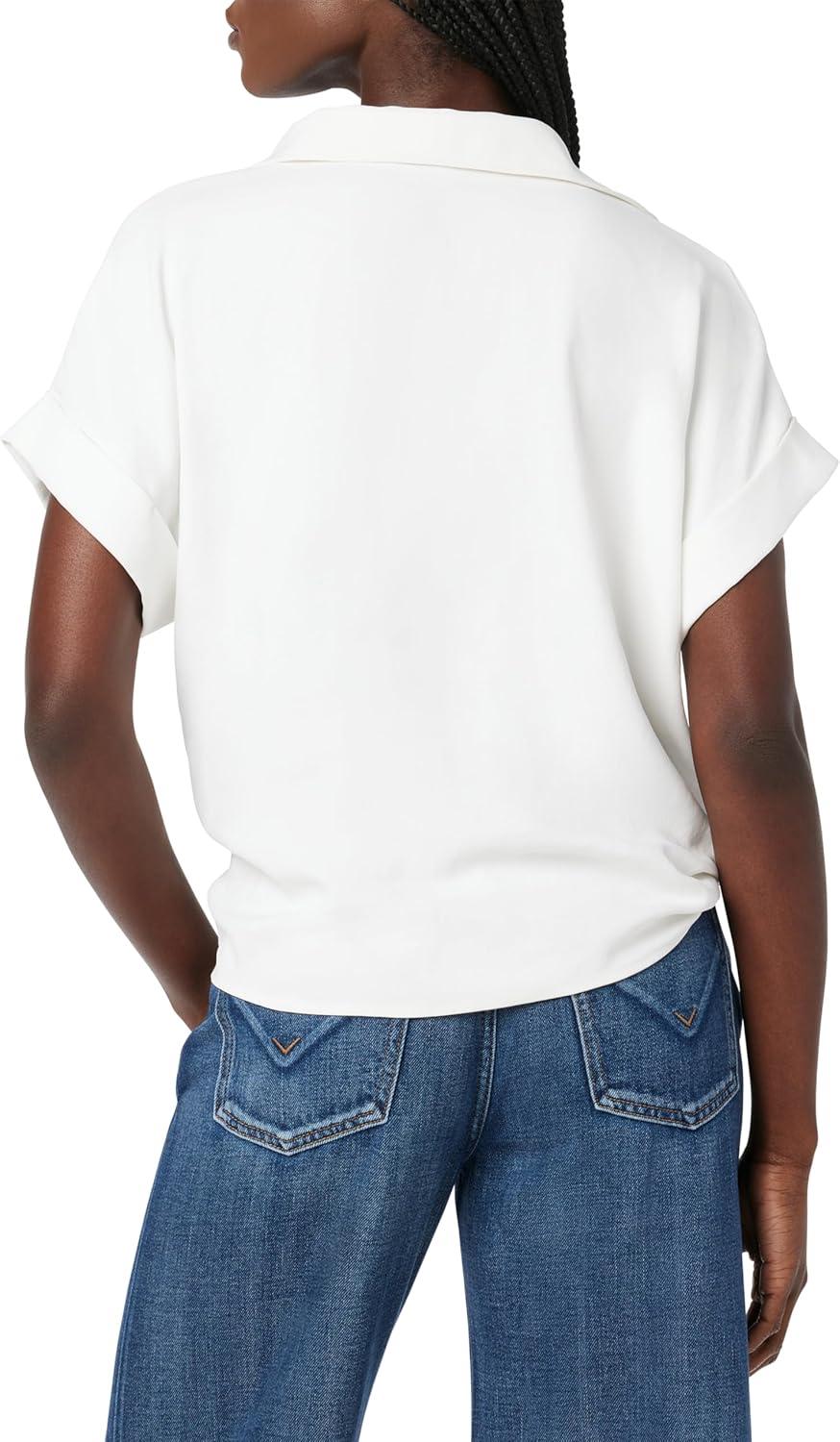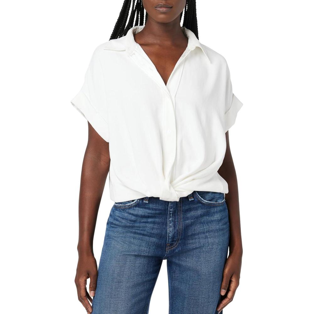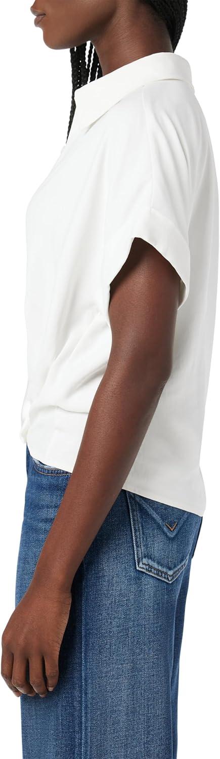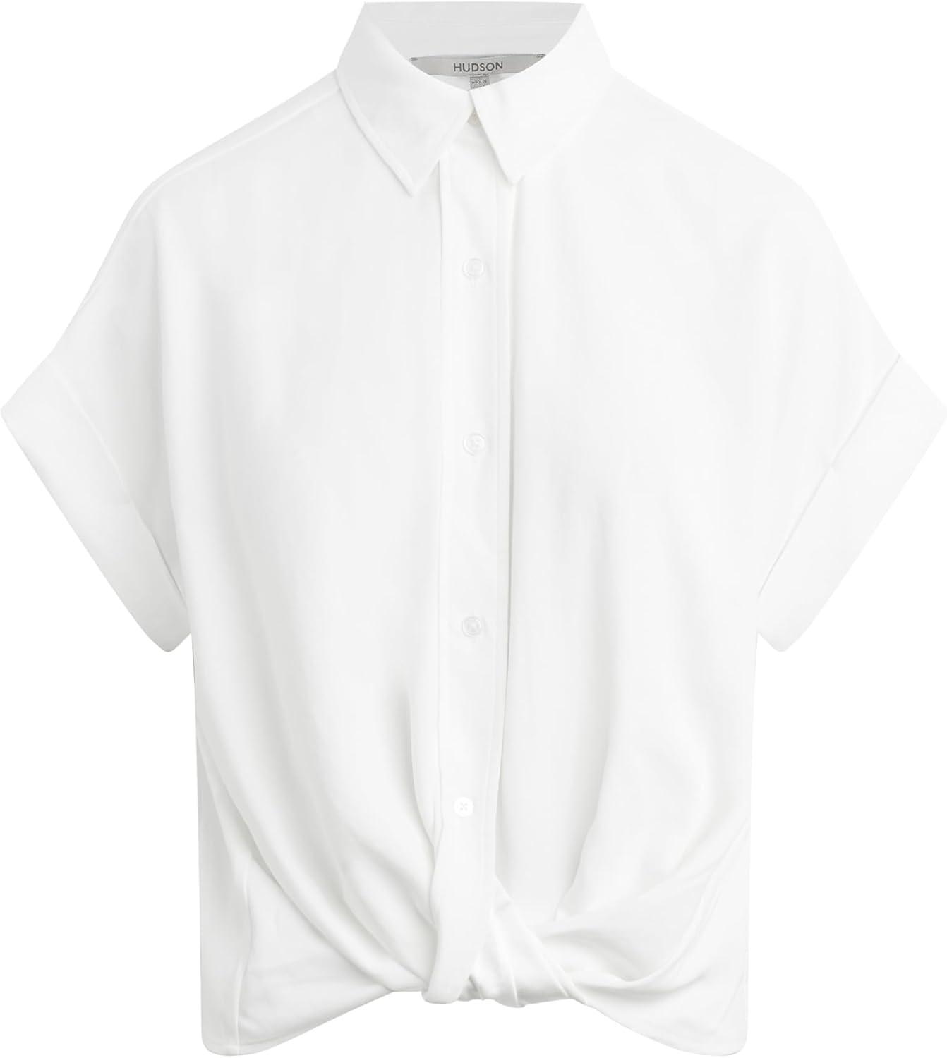 HUDSON Women’s Knot Front Button Down Short Sleeve Shirt(White)