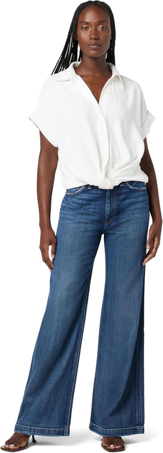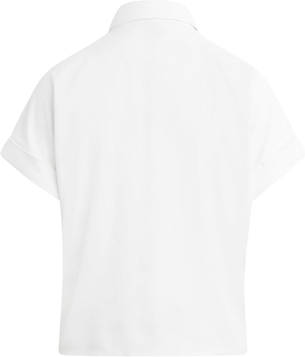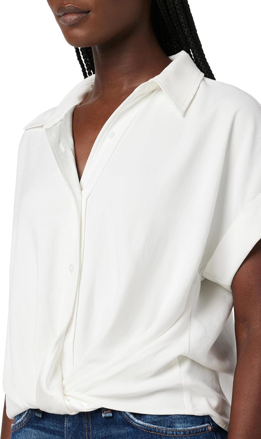 HUDSON Women’s Knot Front Button Down Short Sleeve Shirt(White)