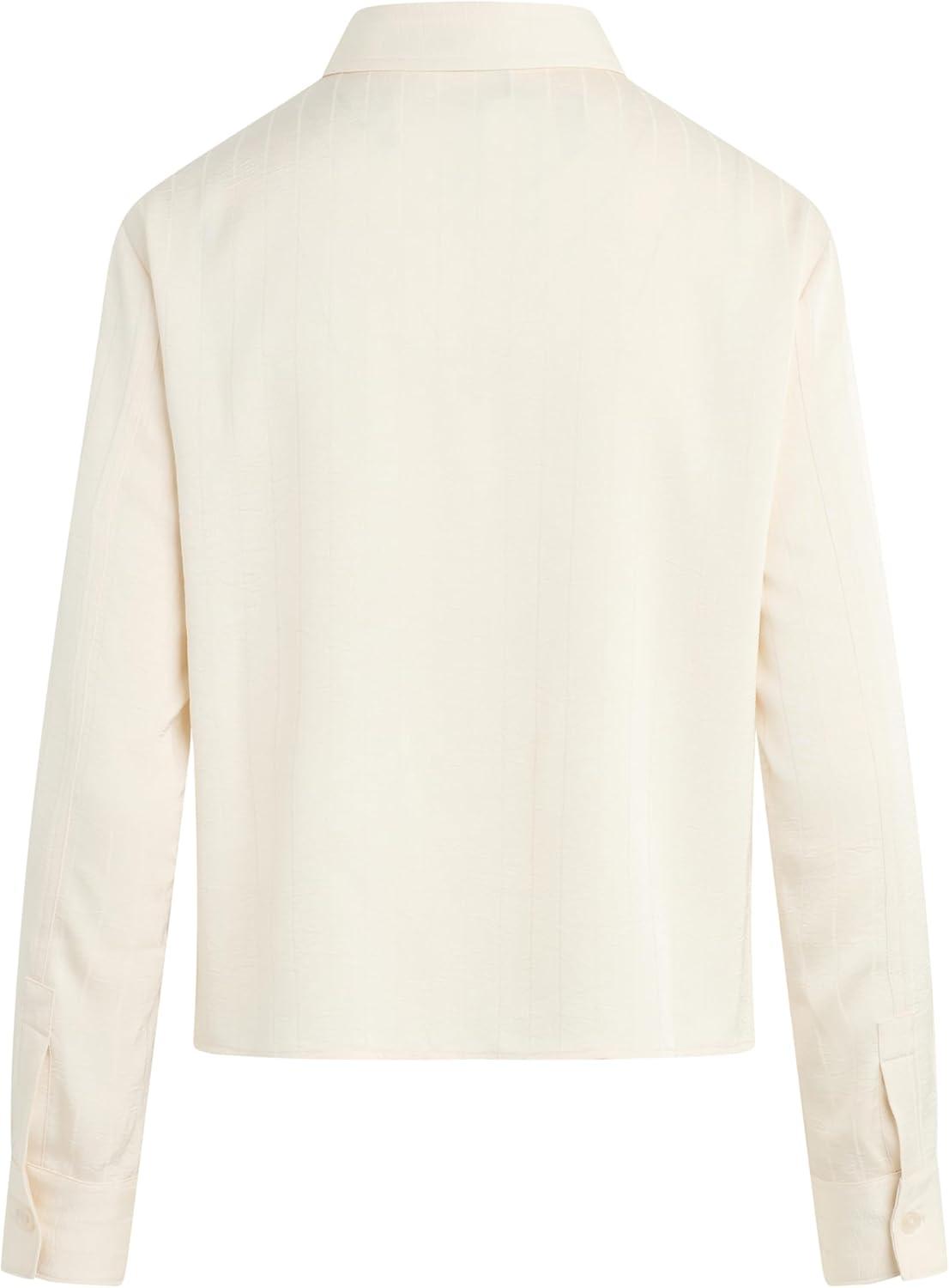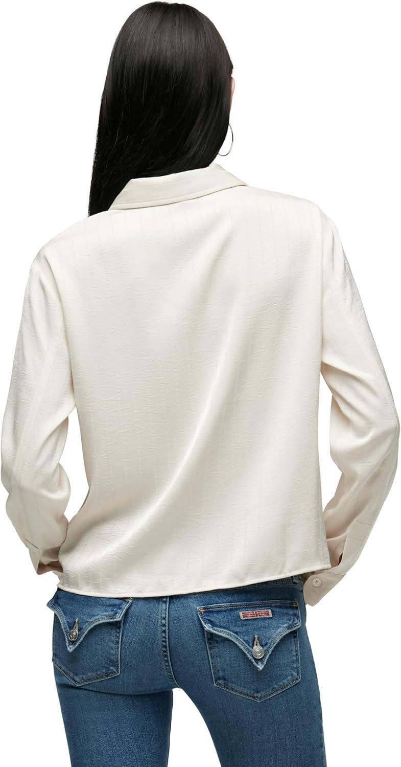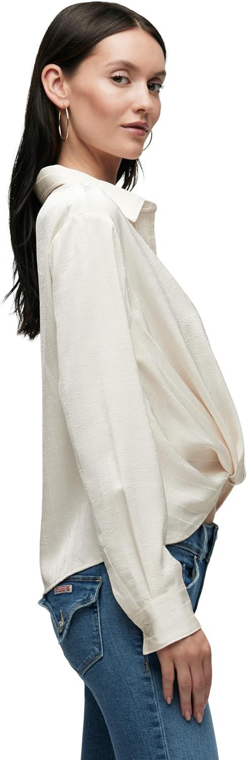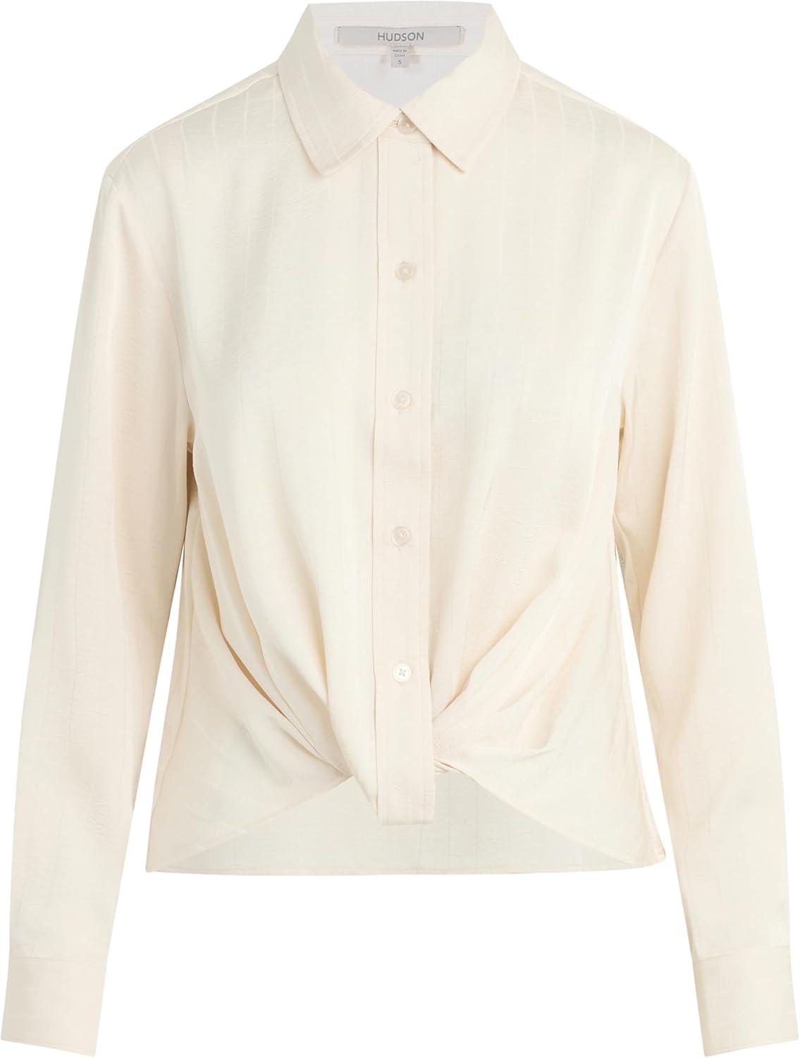 HUDSON Women’s Long Sleeve Knotted Front Button Down Shirt(Creme Stripe)