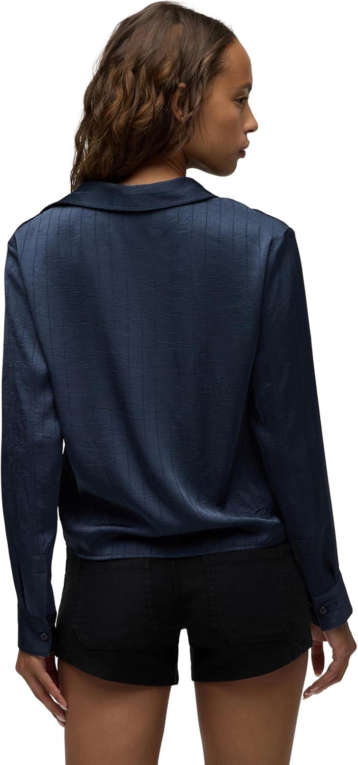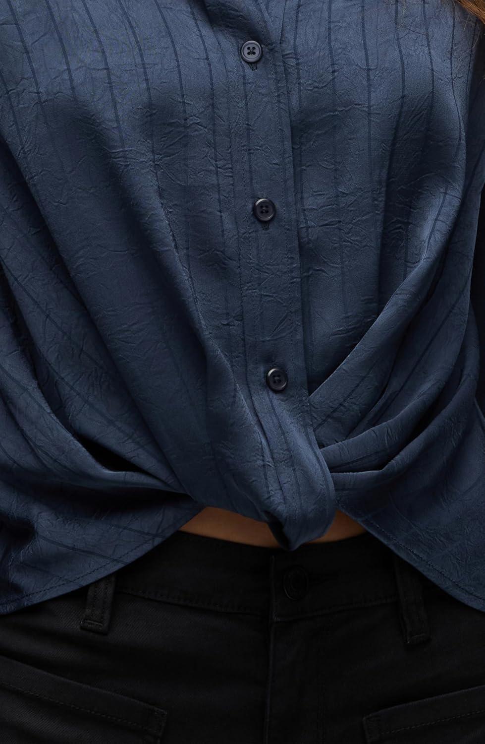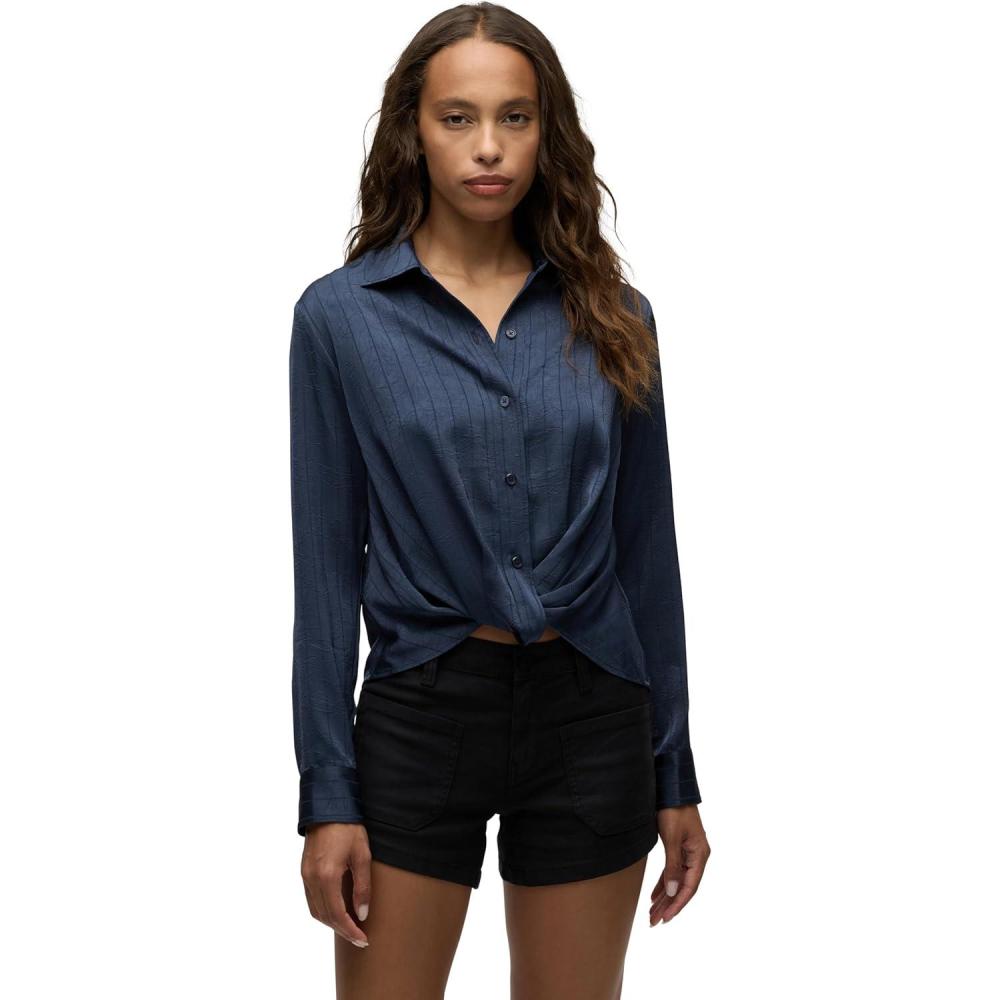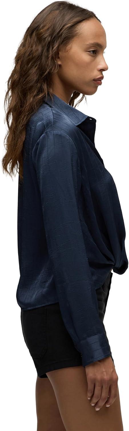 HUDSON Women’s Long Sleeve Knotted Front Button Down Shirt(Navy)