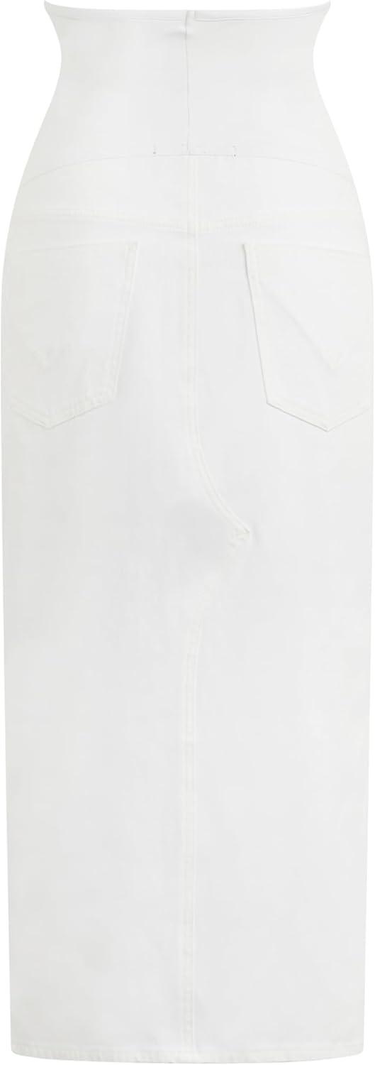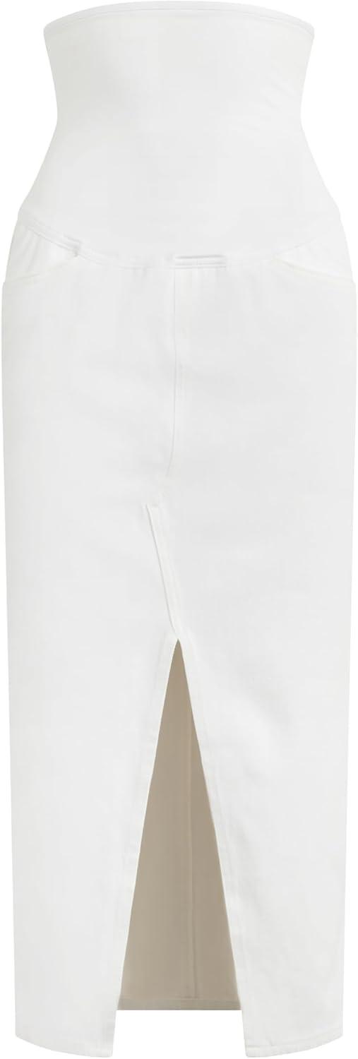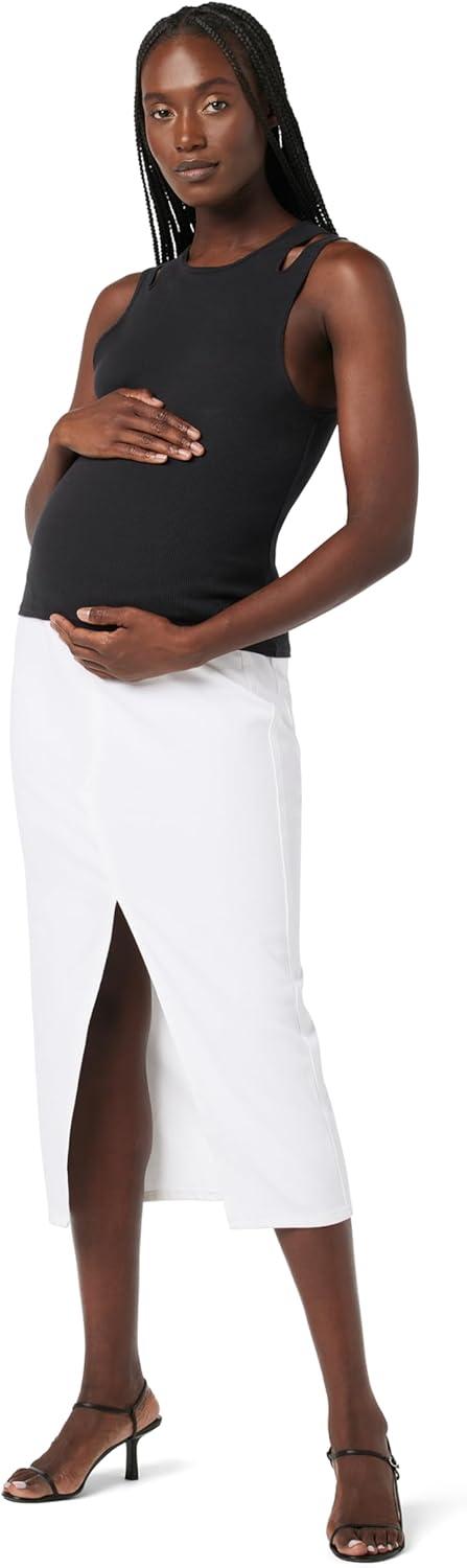 HUDSON Women’s Maternity Belly Band Midi Denim Skirt with Front Slit(White)
