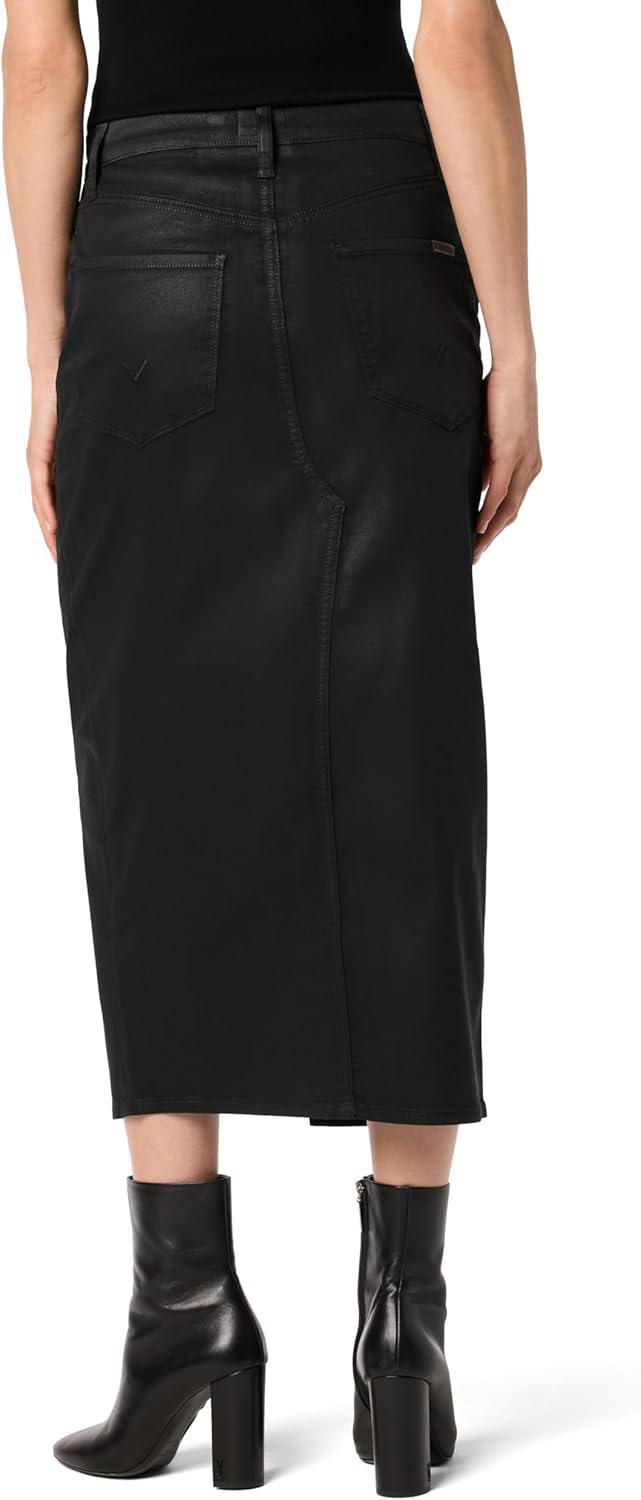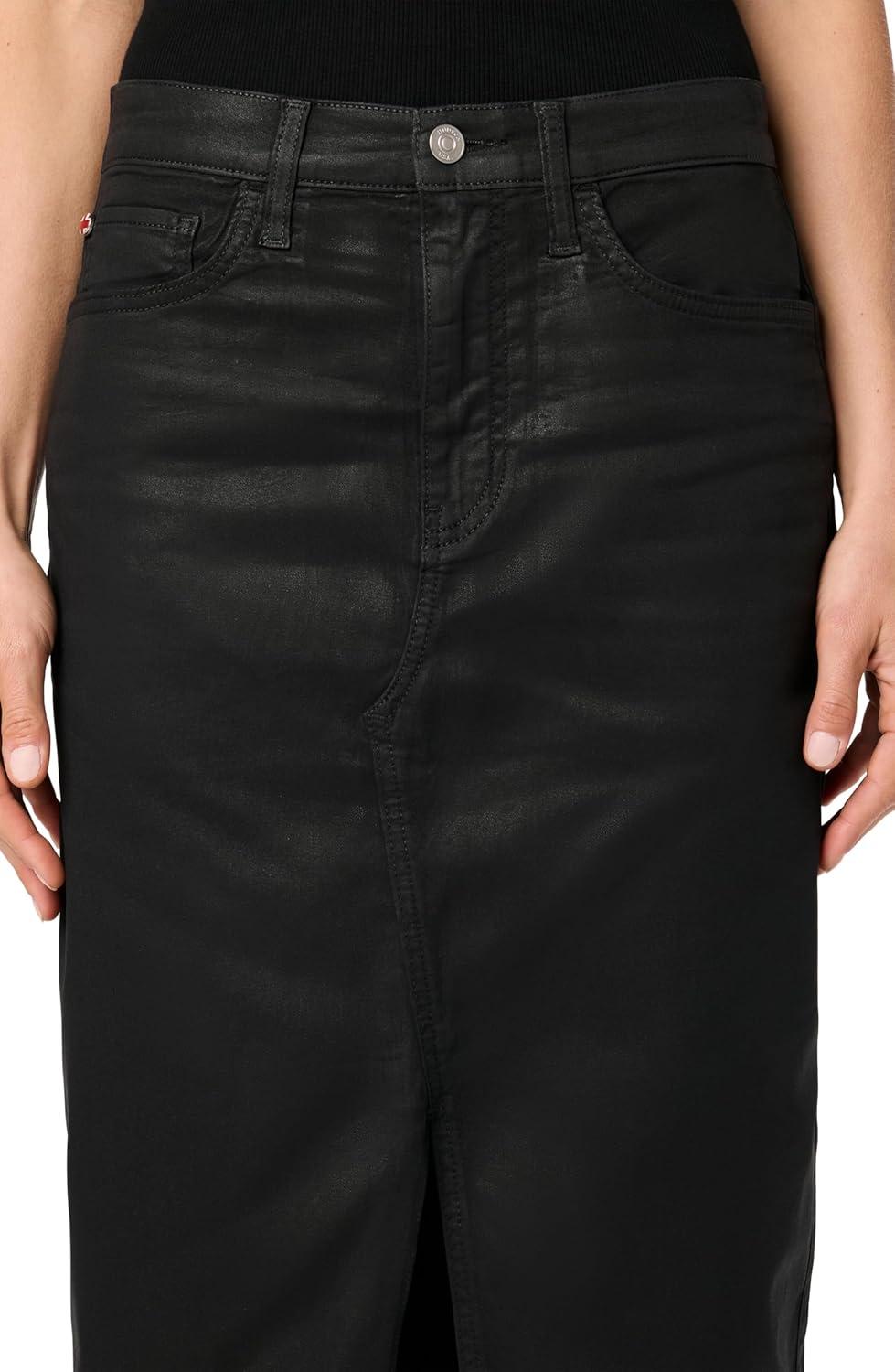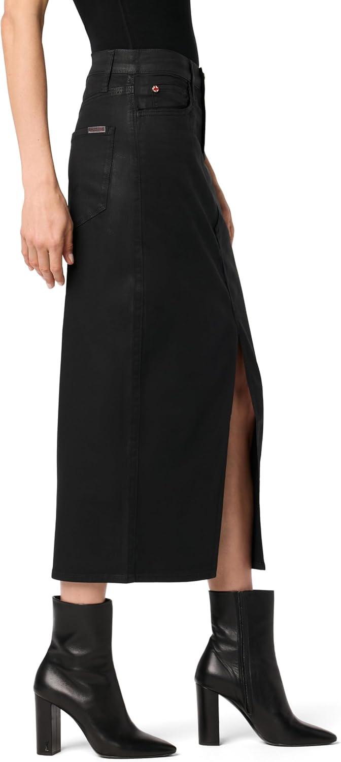 HUDSON Womens Reconstucted Midi Skirt(Black Coated Denim)