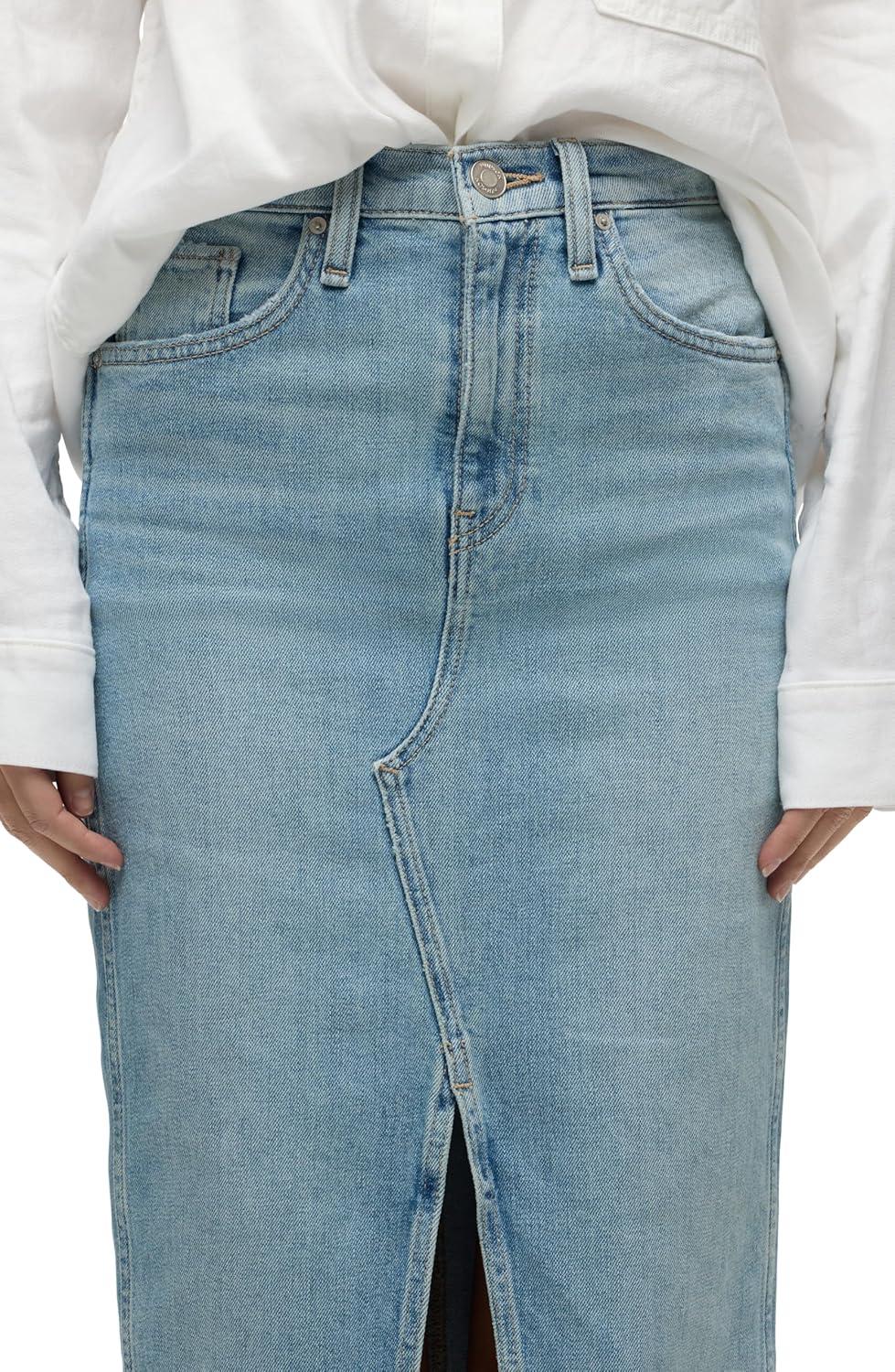Long and sleek, our Reconstructed Skirt is cut from premium comfort stretch denim with a high center slit and gentle fading for vintage appeal.
