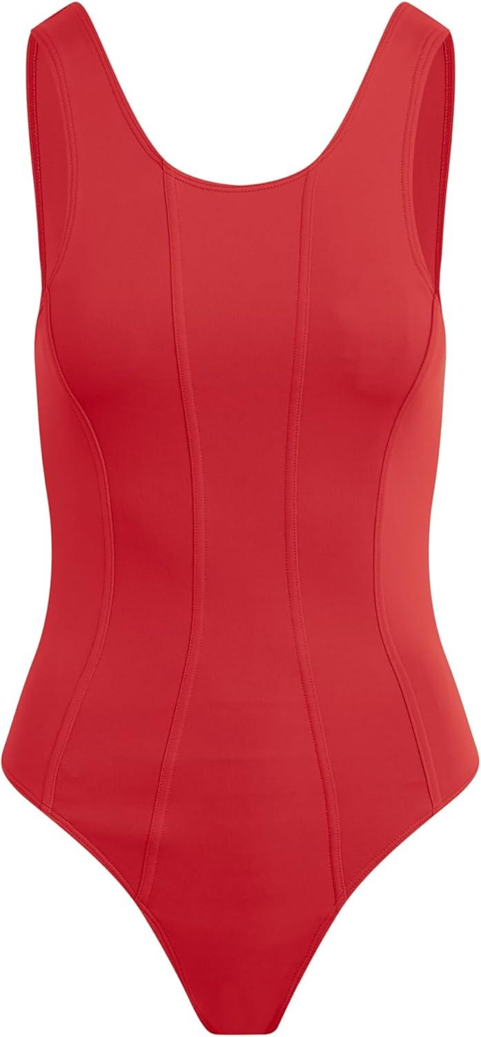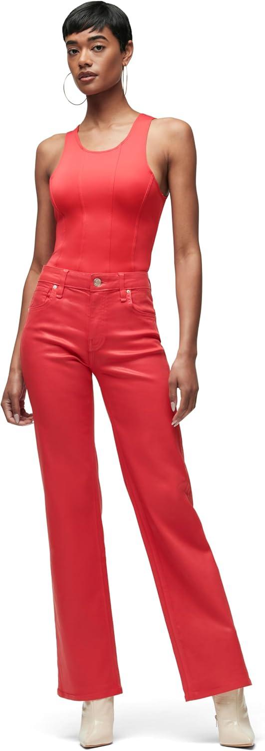 HUDSON womens Scoop Neck Sleeveless Bodysuit(Poinsettia)