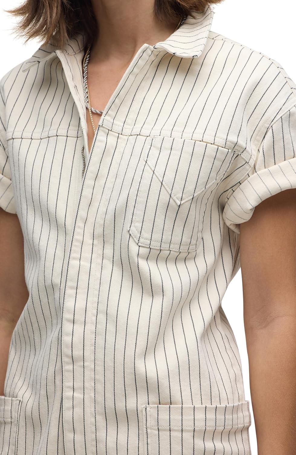 HUDSON Womens Short Sleeve Denim Romper(Ecru Stripe)