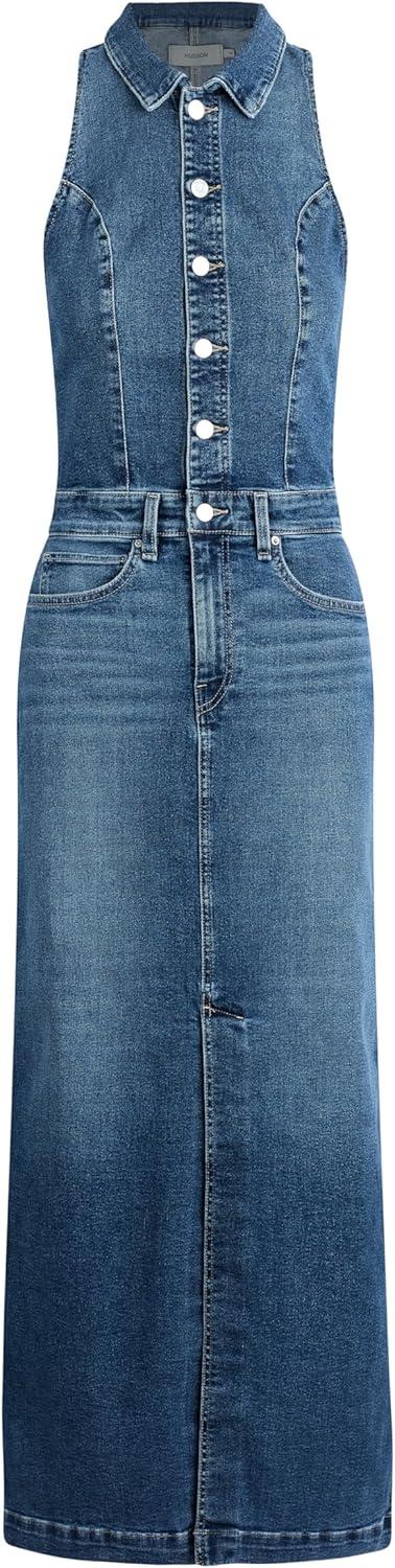 HUDSON Women’s Sleeveless Collared Halter Neck Utility Dress with Pockets(Riches)