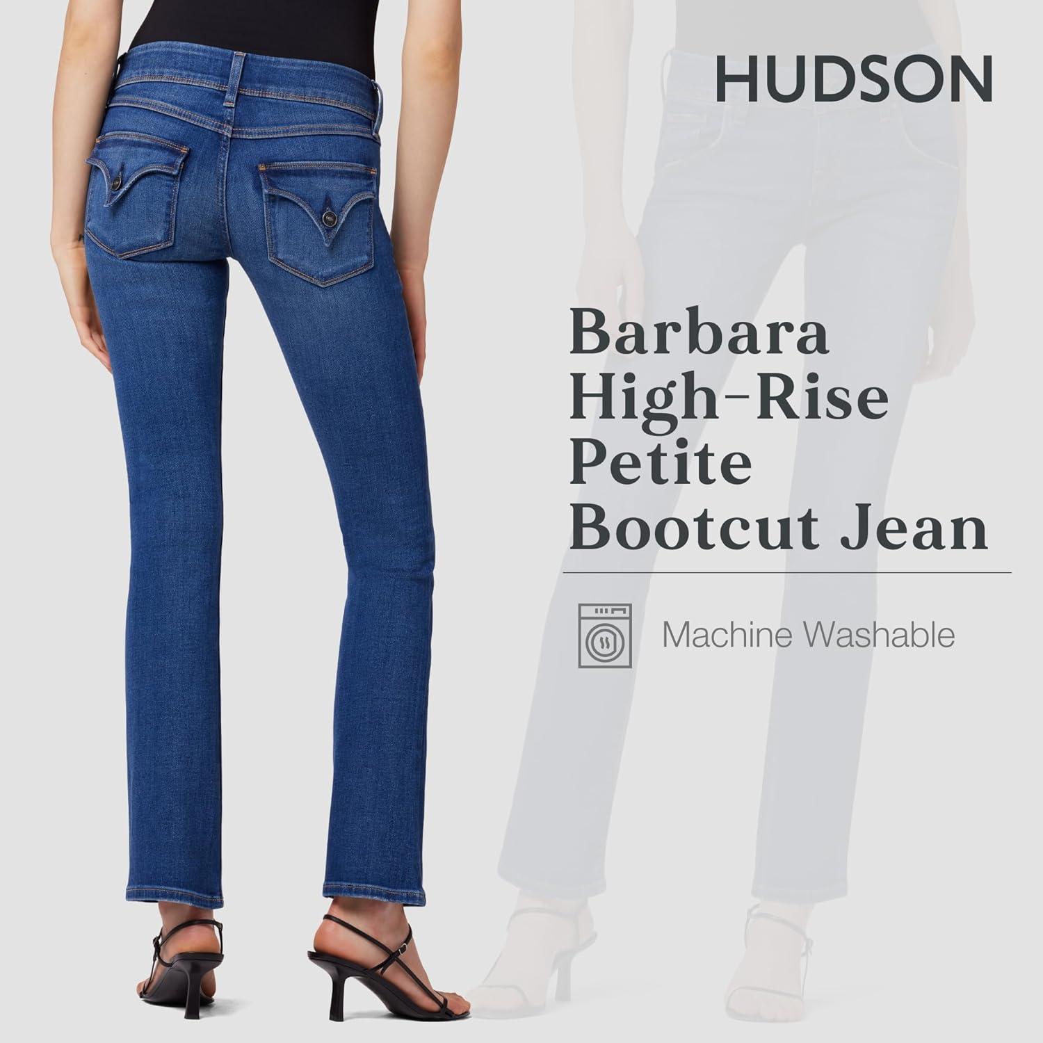 These petite high-rise jeans have a slim, contoured fit, gently flared leg, zipper fly, button closure, and belt-loop waistband. The 5-pocket construction adds function and style wherever you wear them. The high-rise waist measures 8 1/4″ and pairs with the fitted cut, 16-inch flared leg opening, and 31-inch inseam for a modern, flattering profile. Available in multiple washes and sizes, these pants offer an attractive design with unique detailing. Made from a high-quality blend of cotton and elastane for optimum stretch and comfort, these jeans are machine washable on a gentle cycle.